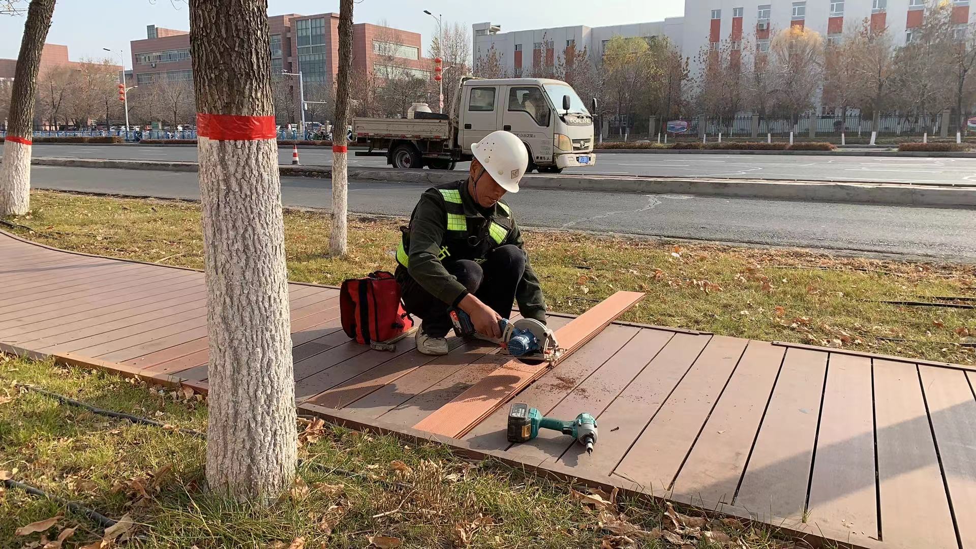 11月7日早上,在石河子市东三路(北二路至北三路段),石河子市城市管理局市政工程养护中心的道路维护人员正在抢抓初冬时节的晴好天气,对沿线破损木栈道进行整治维修,在及时消除安全隐患的同时,确保市民冬季出行的便利与安全。