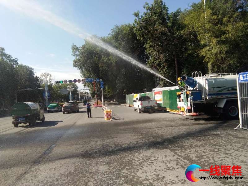 由于老旧小区改造,辖区施工地点多,在要求施工单位按照要求对地面洒水降尘和施工作业面,用防尘网进行覆盖,喷淋系统还在施工作业面上方喷发水雾,多重措施保证工地内部不产生扬尘。在工地出入口建设了标准化的洗轮池,车辆出门前必须要先作全身冲洗,还要在洗轮池里走一遍。并要求施工单位在小区出入口进行洒水降尘,并清洗路面。多方位措施,既降低了扬尘污染,又维护城市市容环境,更保持了城市道路环境卫生整洁有序。