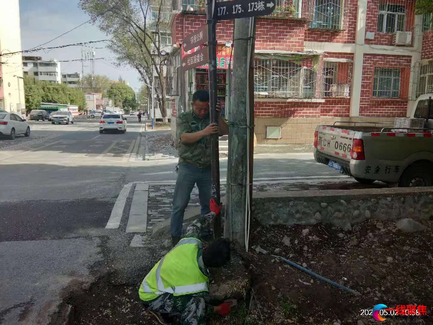 石河子市第八中学门前的绿化带便桥破损严重、石凳损坏,市政设施维护管理办发现后组织人员到现场进行拆除;北四路(西一路至西二路)北侧5-1社区道路名牌歪斜,及时组织施工人员进行修复。
