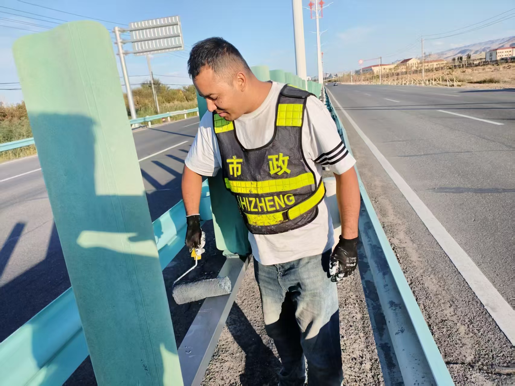 国庆、中秋双节临近,为营造安全、有序、整洁的城市环境,保障市民节日期间平安顺畅出行,连日来,石河子市城管局市政工程养护中心启动专项维护行动,对全市范围内的道路护栏、路名牌、交通指示牌、道路护桩、安全隔离墩等各类交通设施进行了集中排查与维修养护。