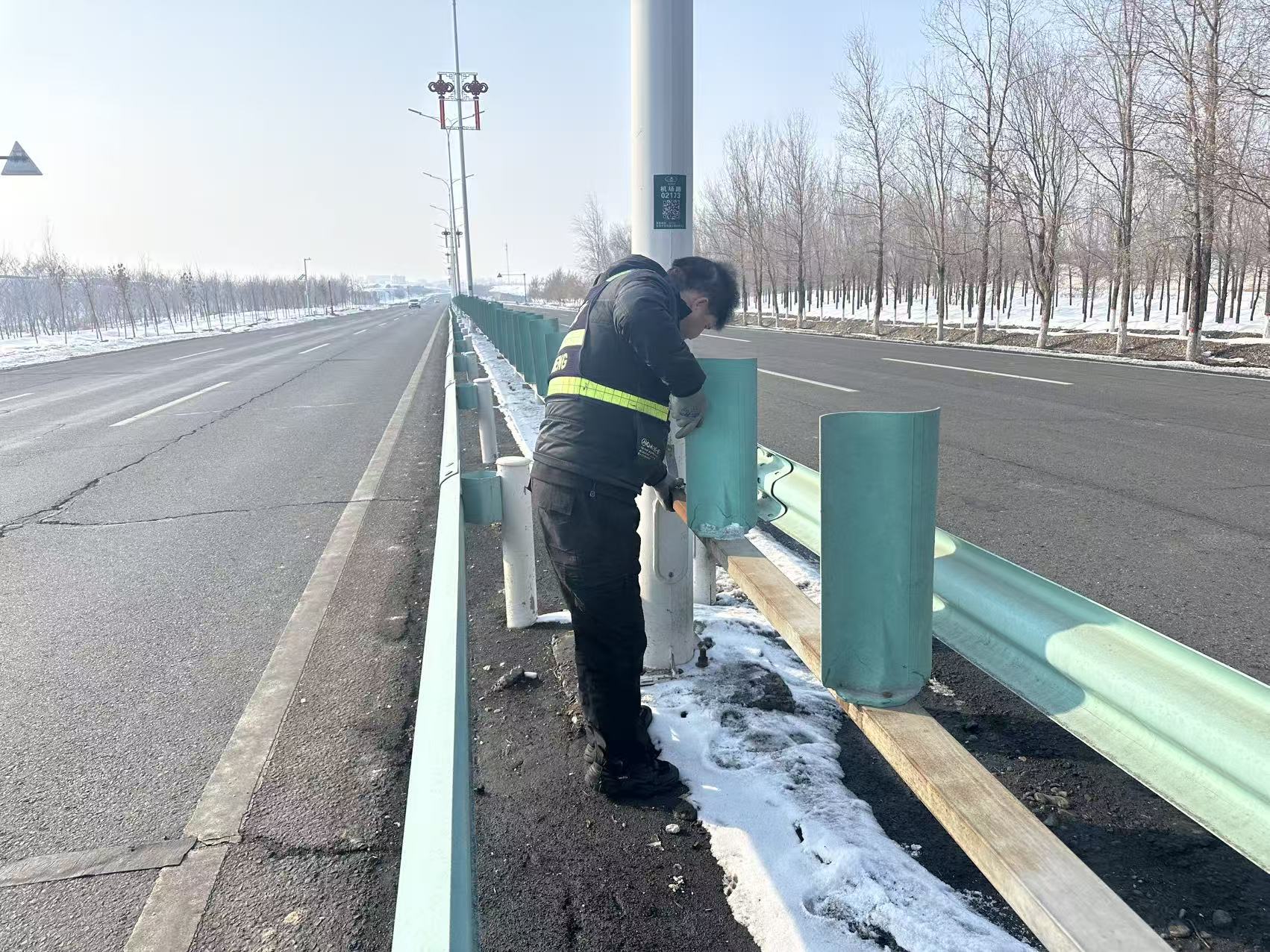 为确保春季道路交通设施完好,保障市民及过往车辆出行安全,连日来,石河子市城管局市政工程养护中心抢抓天气回暖的有利时机,对机场路沿线的防眩板展开了全面的春季专项维修与更换工作。