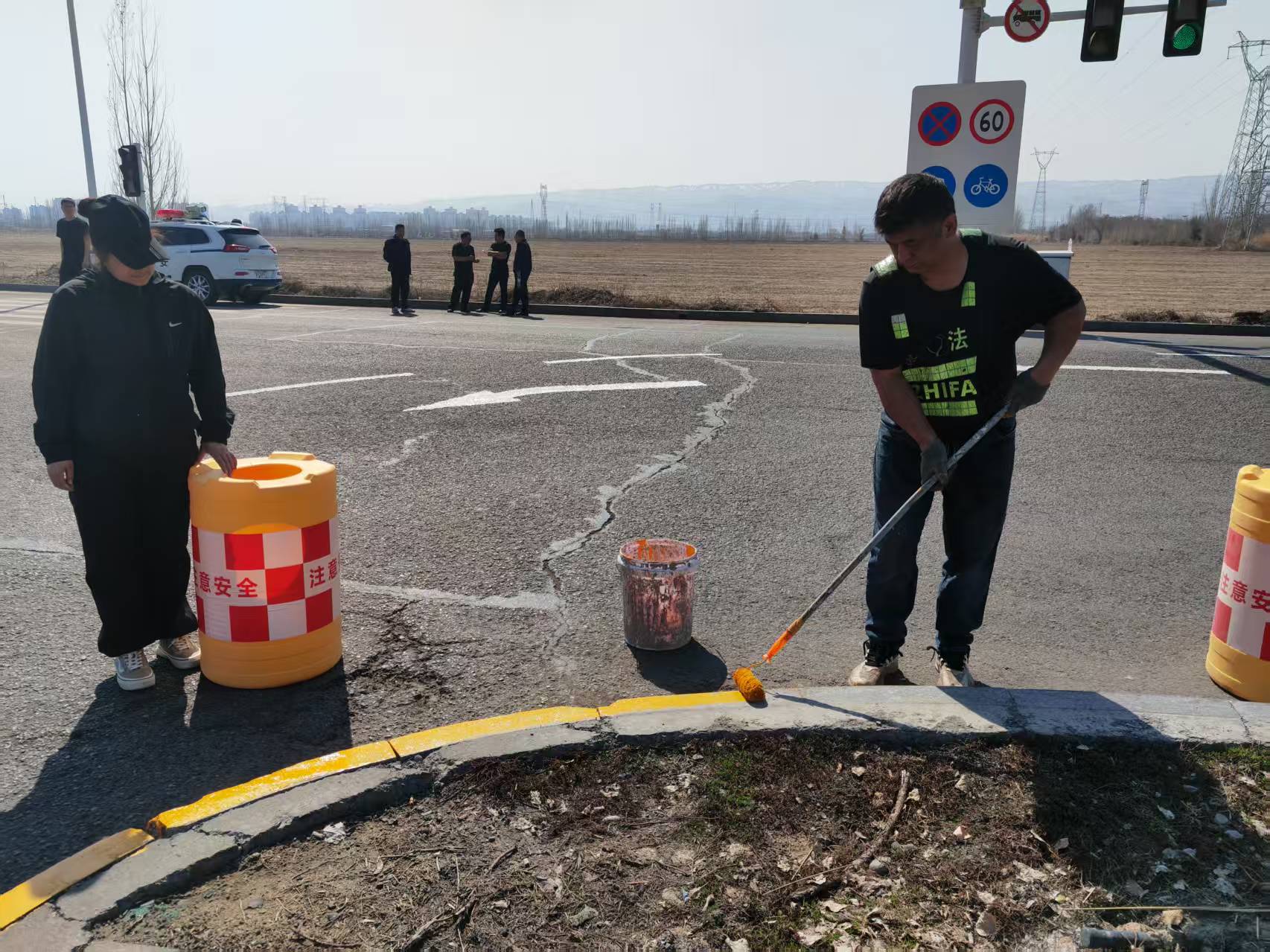 西四路与南四路路口施划导流线 为交通安全“护航”