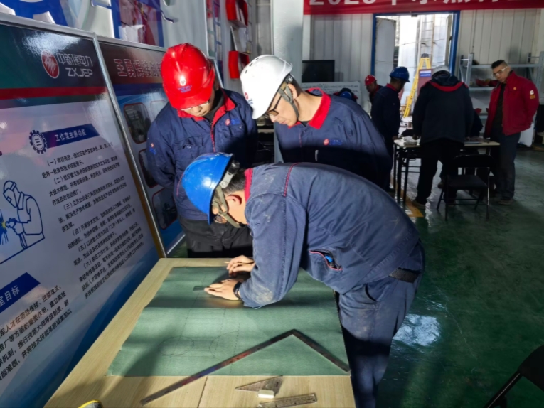 赛场上,各环节竞赛亮点纷呈、高潮迭起。管网图绘制区,选手们凝神聚力,手中笔尖快速勾勒,精准标注每一处管线节点与阀门位置,图纸上的线条疏密有致,尽显专业严谨;管道测漏现场,选手们熟练操作探测仪器,在复杂管线布局中仔细分辨声音信号,凭借丰富经验快速定位漏点,展现出“火眼金睛”般的精准判断力;带压堵漏环节,面对模拟的管道泄漏场景,选手们沉着冷静,迅速搭建堵漏装置,密封、紧固等一系列动作一气呵成,成功化解“险情”;异径三通制作与焊工实操区,焊花飞溅中,选手们手持焊枪稳定运弧,焊缝成型均匀美观,将工匠精神融入每一道焊缝;电路操作与PLC编程区,选手们专注接线、精准编程,指尖在元器件与键盘间灵活切换,快速完成电路安装与故障排查,展现出扎实的电气技术功底;换热站调整现场,选手们根据模拟的运行异常数据,精准调控阀门开度与参数设置,迅速让系统恢复稳定运行。