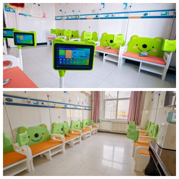 在环境改造中,换上萌趣十足的小青蛙造型的儿童智能输液座椅,小朋友们一坐上去就爱不释手;座椅配备的可移动平板,让孩子们沉浸在精彩的动画世界里,不知不觉就忘记了打针的紧张;在就诊区域增加了图书角,为小朋友准备了科普读物、学前故事、儿童绘本等图书,成为孩子们的“快乐小天地”。