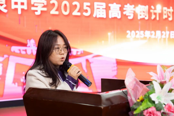 马萌浠老师代表全体高三教师发言。马老师温暖而坚定地表示:在这最后的冲刺阶段,全体高三老师将与同学们并肩作战,全心全意为同学们提供最优质的教学服务;尽心尽力为同学们及时答疑解惑;诚心诚意给予同学们最温暖的陪伴与支持。
