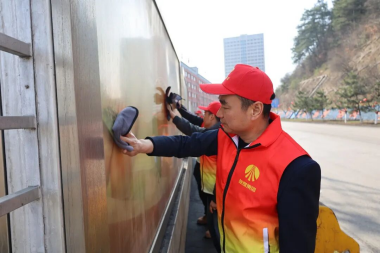 活动中,志愿者们身着马甲化身清洁工,携带水桶、水盆、抹布等清洁工具,来到矿主干道文化长廊、生活区水房宣传栏等区域,认真清理着宣传栏上的灰尘、污渍。有人踮起脚尖擦拭高处边框,有人蹲下身仔细清理边角缝隙,不放过一处死角。大家分工协作,细心刮除杂质,反复擦拭玻璃板面,原本蒙尘模糊的宣传栏渐渐变得干净透亮、整洁醒目,用实际行动践行雷锋精神,维护着矿井整洁有序的环境。