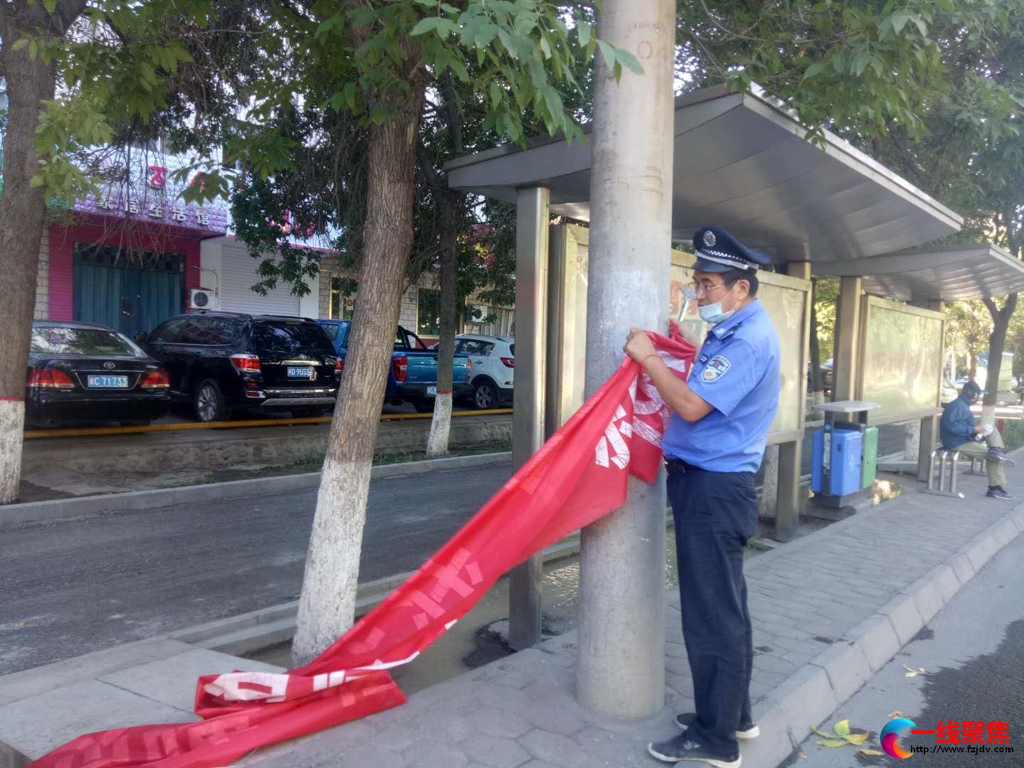 清理中,执法人员规范、加固疫情宣传条幅13条,清理、拆除无手续广告条幅21条。