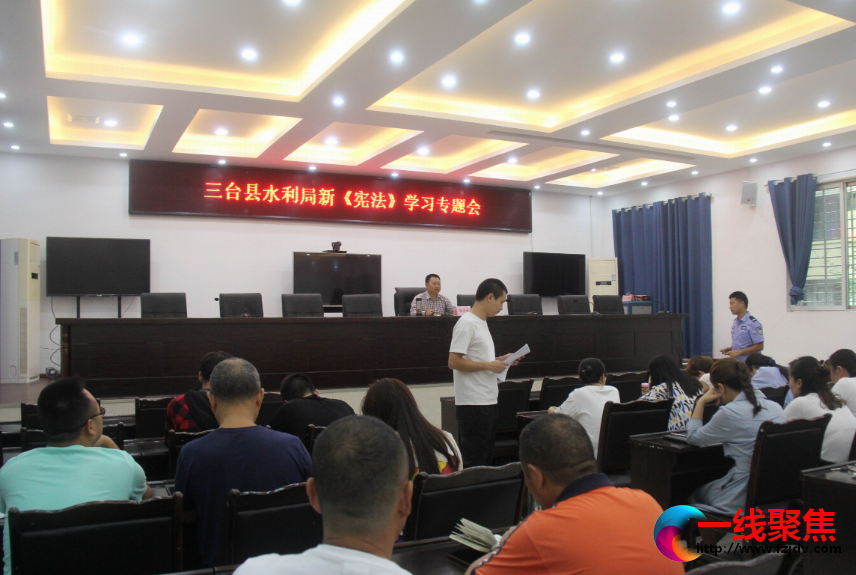 一线聚焦讯(周顾 谢勇)“中国特色社会主义法治道路的伟大实践,历史性地形成了中国法治现代化的总体特征。”,8月24日,三台县水利局结合“七五”普法教育,组织党员干部职工学习宣传贯彻新《宪法》和《民法典》。大家认为:既坚持完善党对依法治国的领导,又要强化法治现代化,推动国家治理体系和治理能力现代化。我们的法治建设就要以人民为中心,以法治发展推动经济社会绿色高质量发展,持续保障和促进社会的公平正义。