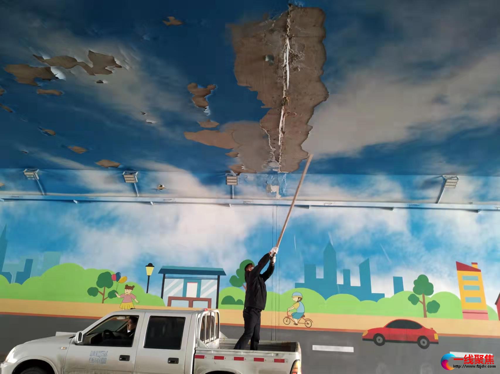 经现场查看,天山路下穿通道内因桥顶渗水造成桥洞顶面墙皮脱落、冰柱悬吊,既影响美观,还存在安全隐患。市政工程养护中心高度重视这一问题,立即安排市政监察人员每天对桥洞内的冰柱进行清理,同时协调相关施工责任单位解决桥洞渗水结冰问题,彻底消除事故隐患。天山路改造施工方承诺:近期将组织人员对桥面防水进行改造施工,解决桥洞内渗水结冰问题。