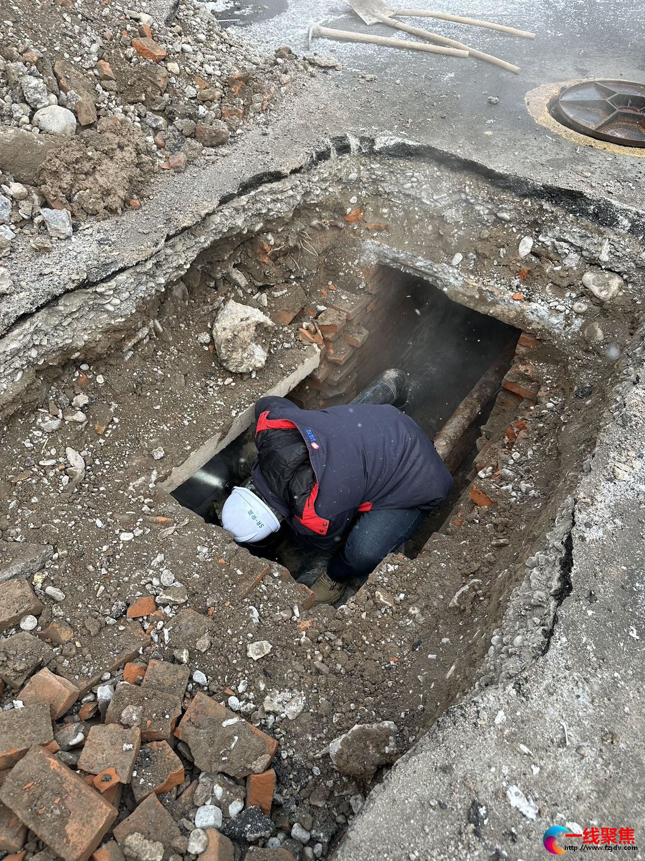 1月8日一早,新疆天富水热产业北区所6号服务站的维修人员,正在对石河子市22-2社区28栋楼东侧主管道漏水情况进行现场处理。
