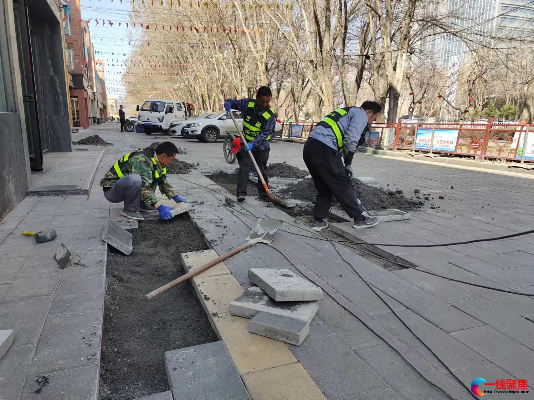 破损、塌陷的路面不仅影响市容市貌,而且也极易留下安全隐患。4月4日,在东四路(北三路至北四路段)天富名城小区东门沿街门面前,石河子市城管局市政工程养护中心的道路维护人员正在对沿线破损、下沉的人行方砖路面进行集中维修,确保市政设施完好和市民节日安全出行。
