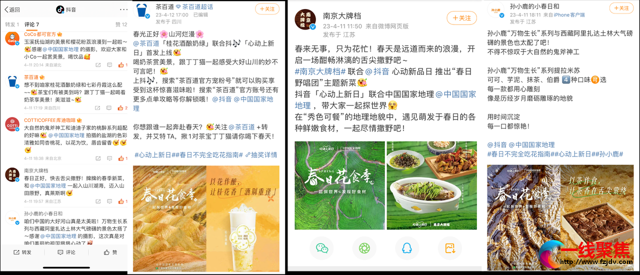 在整体活动已调动用户参与积极性后,抖音生活服务「心动上新日」以深耕内容策划,打通线上线下全链路的营销策略,与中国国家地理聚焦“垂直渗透”的理念,在收官期扩大“春日花食季”声量,同时完成口碑打造。